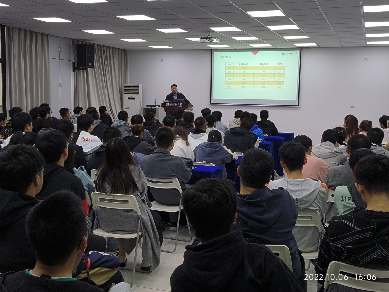 会议伊始,我校教务处副处长臧庆教授开场。臧庆教授是全国考研英语名师,国家考研英语阅卷组成员,具有十多年的考研英语辅导经验。臧庆教授分别从考研形势、考研英语难度、典型例题等方面为同学们展开了详细介绍,指出考研英语的难度级别较高,不光需要大量的词汇量积累,还需要清晰的逻辑思辨能力、丰富的文化积累以及纯熟的写作表达能力。大三的同学们可以从词汇量开始准备,一步步积累,在最后的考试中取得较好的成绩。