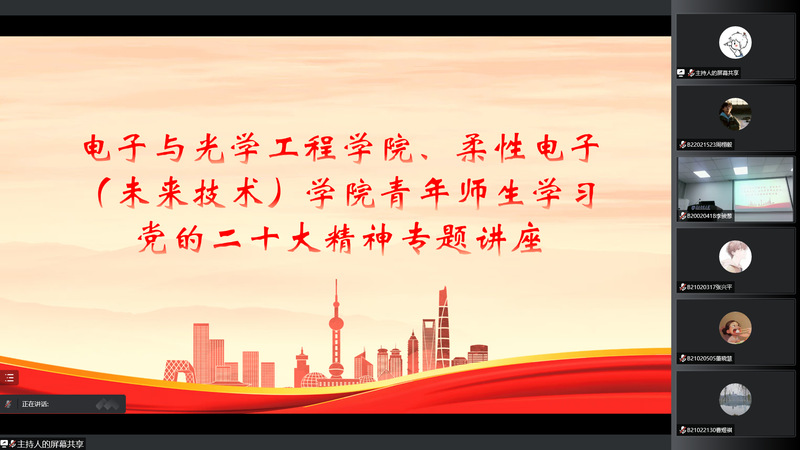 为引导学院师生深入学习贯彻党的二十大精神,11月23日下午,南京邮电大学马克思主义学院党委书记沈召前教授为无码影片 青年师生作题为“深刻把握‘两个确立’,坚决做到‘两个维护’——二十大精神学习”的报告。本次报告会在线上线下同步进行,线下于无码影片 电光学科楼B322会议室开展。学院全体辅导员老师、学生党员代表、无码影片 第140期菁英人才全体学员参会。