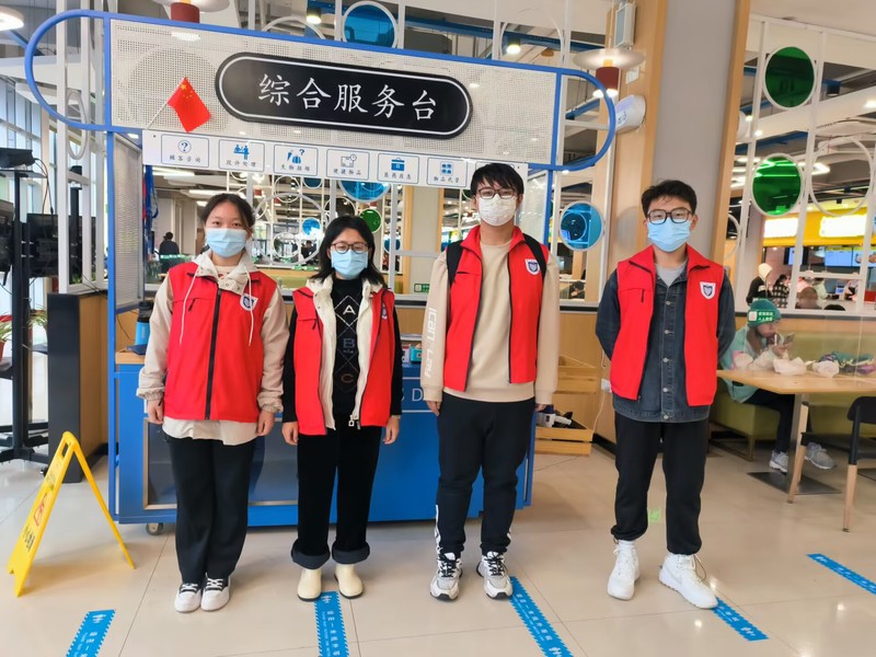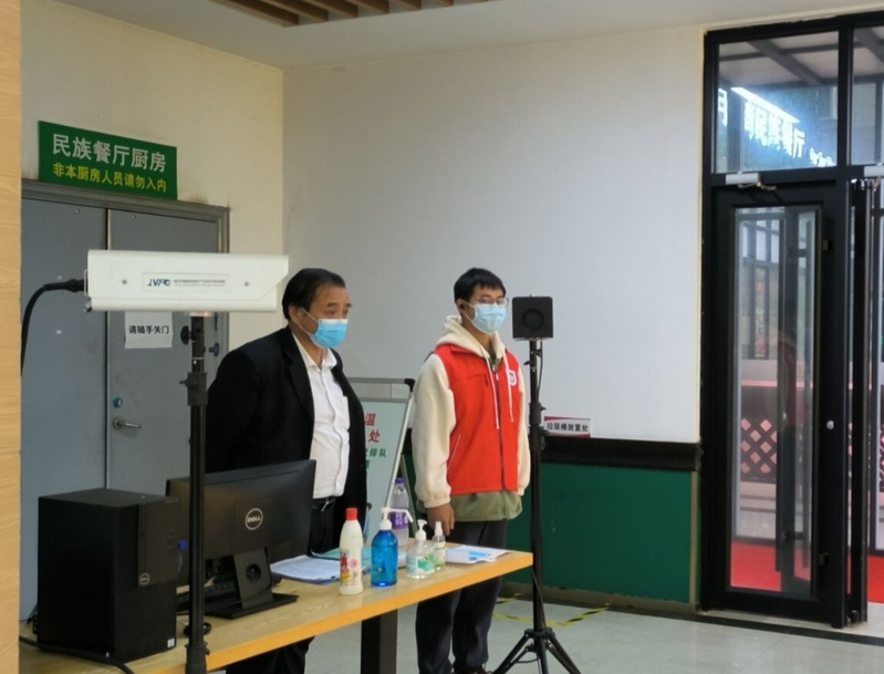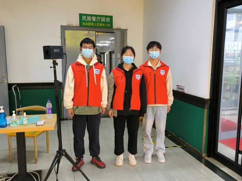 在学校三个食堂的出入口,志愿者们在严格做好自身防疫的前提下,坚守自己的岗位,热心提醒大家正确佩戴口罩、保持安全距离,有序进入食堂用餐,确保了现场平稳安全、井然有序。他们一丝不苟的工作态度、良好的精神面貌和文明素养受到现场工作人员、用餐同学的高度评价。同时,大部分同学都能主动佩戴口罩,从入口进入食堂,积极配合防疫要求。