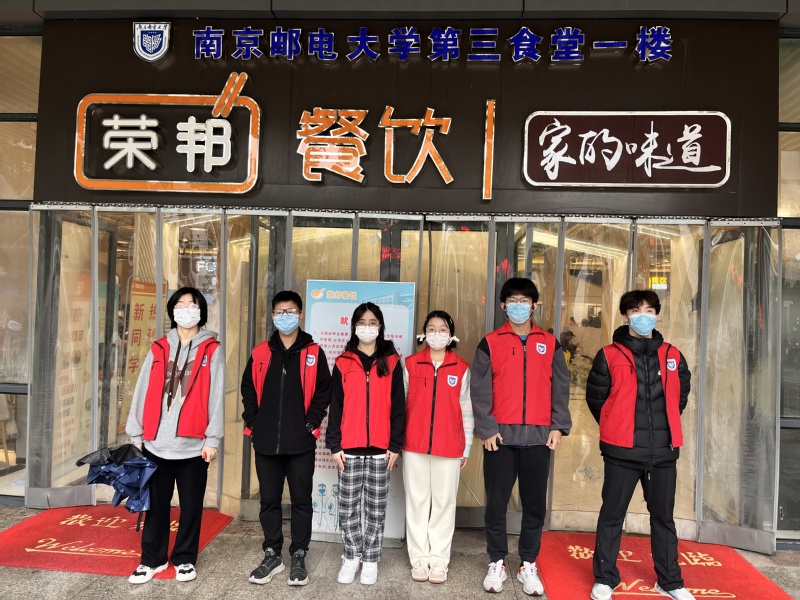 2022级电磁场与无线技术专业学生积极参与志愿活动,主动成为志愿者中的一员,维持食堂出入口秩序工作。