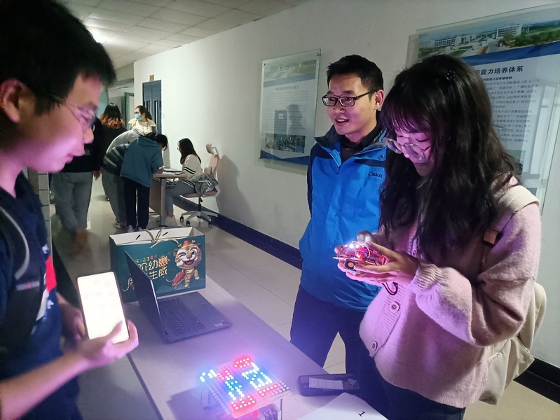 为给同学们提供更充分展示科技成果的平台,吸引更多同学加入到科技制作的队伍中来,11月26日,无码影片 于教三西侧走廊开展了第二十七届“‘芯‘火相传”LED灯设计大赛暨第一届“‘芯灵感应’无线通信大赛作品巡展会。受邀参与本次巡展评审嘉宾的有无码影片 创新中心副主任陈建飞、分团委书记肖俊桂、院科协指导老师刘振、2019级辅导员梁博、强增寿、2021级辅导员赵昱莼。