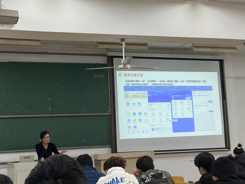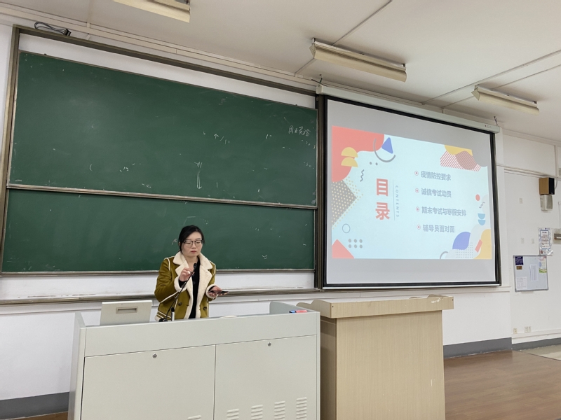 会上,肖老师从“疫情防控要求”“诚信教育”“考研动员”等几个方面和同学们进行了交流。在疫情防控方面,肖老师提出希望同学们做好自己的第一责任人,出行务必佩戴好口罩,加强体质健康锻炼,尽可能不到人流量密集的地方,维护好自身安全。在诚信教育方面,肖老师指出,希望同学们继续坚持“诚信考试,清白做人”的原则,对自己的学业负责,更要对自己的未来负责,不抱侥幸心理,不存投机之心,要脚踏实地,认真复习,凭“真本事”争取在期末考试中获得令自己满意的成绩。随后,肖老师再次对同学们进行了考研动员,其指出“同学们的大学之旅将进入关键期,就业、考研、留学、创业、考公……种种选择即将成为同学们思考的当务之急,从目前社会发展的大趋势看,考研对于大部分同学来说或许是走向更高学术平台,拥有更多选择机会的一次‘重要修行’,希望同学们能够认真思考,做出适合自己的决定,如果考研,要尽早谋划,提前熟悉基础课程的复习策略,切勿再虚度光阴”。会议最后,肖老师和同学们回顾了本学期年级中开展的各项工作、活动,并组织同学们进行了“辅导员面对面”测评。