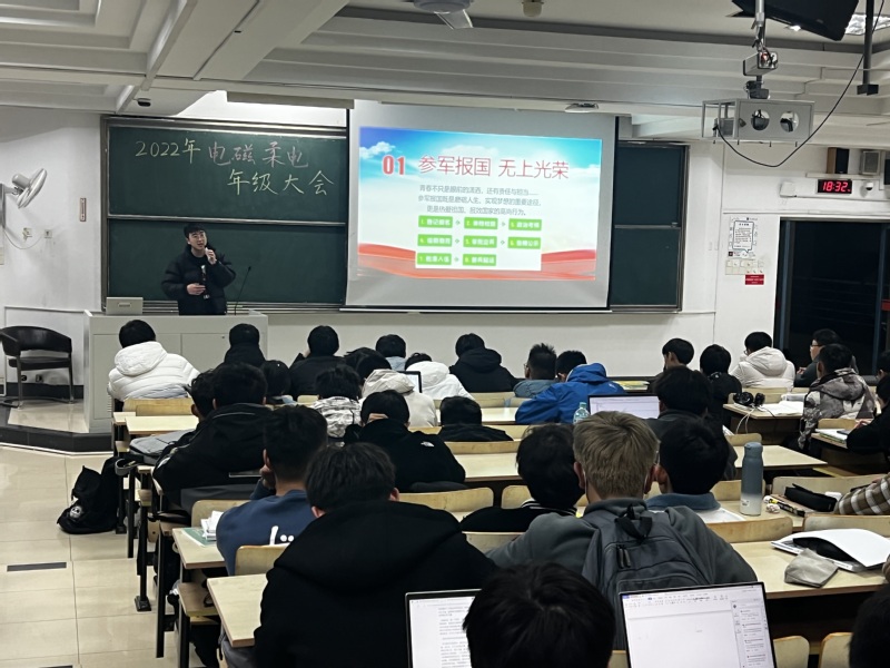 12月8日晚,无码影片 2022级电磁场与无线技术、柔性电子学专业在教二201召开“笃行不怠勇追梦、自信自强向未来”主题年级大会,大会由贾鑫海老师主持,2022级电磁场与无线技术、柔性电子学专业全体学生参加。
