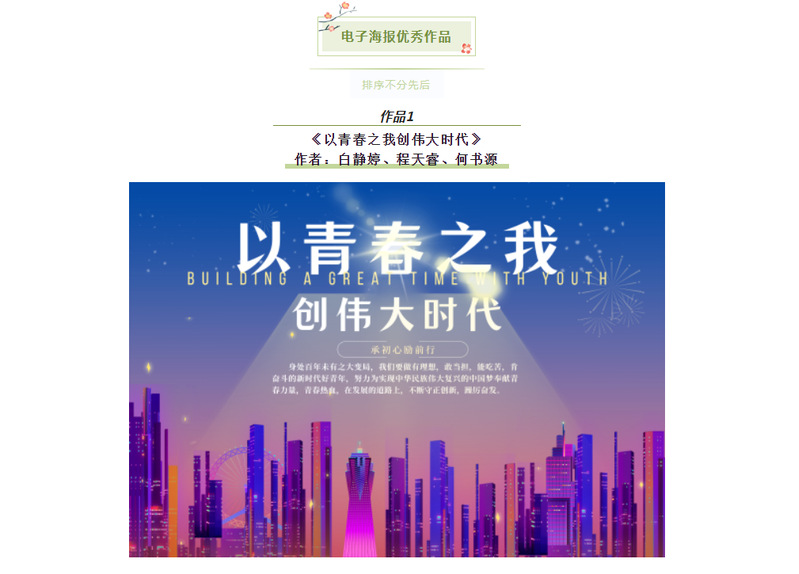 活动过程中,我院各团支部、学生组织(社团)号召广大同学积极参与,将本次劳动教育实践活动作为团支部、学生组织(社团)展文化、树形象、立新风的重要抓手,作为同学们学习新技能、担当新作为、贡献新智慧的广阔舞台。经过前期宣传,活动共征集到来自学生组织(社团)、各团支部的优秀投稿作品简历28份、视频30份、海报58份、PPT模板47份。学院组织了作品遴选和网络展示,从投稿作品里择优推荐优秀作品参加我校第四届新媒体设计大赛。