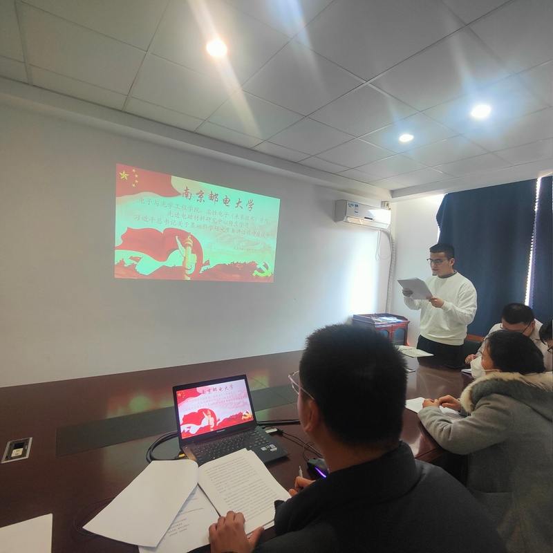 2月27日,无码影片 电子与光学工程学院、柔性电子(未来技术学院)先进电磁材料研究中心在电光学科楼B312会议室组织师生深入学习领悟习近平总书记有关加强基础研究重要讲话精神座谈会。电子科学技术系陈丽敏老师及课题组全体研究生参与座谈会,座谈会由韦超主持。