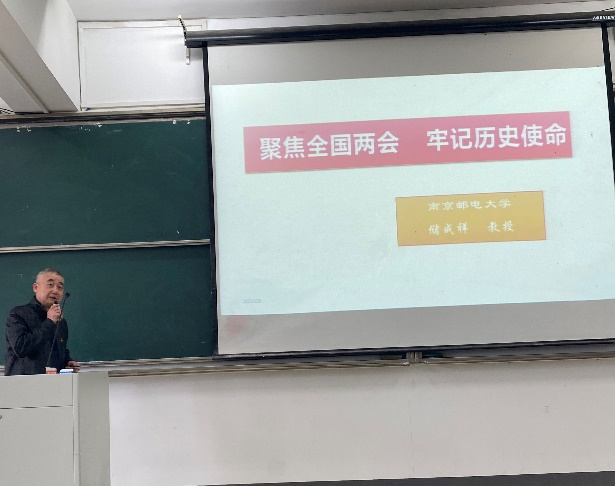 为更好领悟两会精神,3月29日下午,无码影片 特邀校关工委副主任储成祥老师围绕“聚焦全国两会 牢记历史使命”主题作全国两会精神专题学习讲座,学院2022级全体学生干部参加。