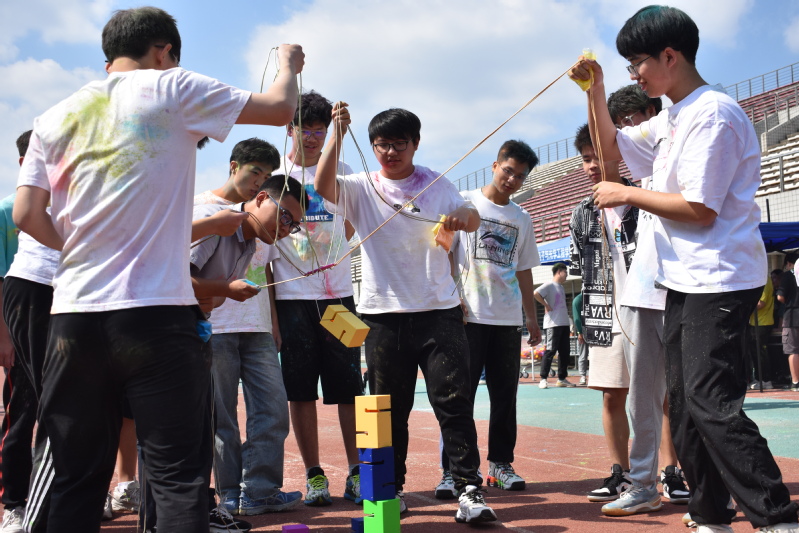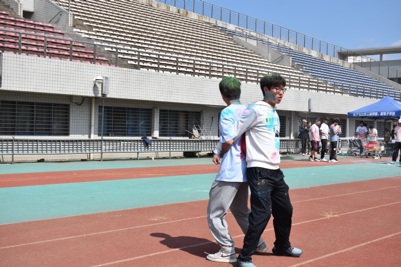 此外,现场还有“跳房子”和“手印彩绘”活动,以及荧光棒、泡泡水、小风车、纸飞机、竹蜻蜓等小玩具,同学们还在比赛结束后尽情挥洒彩粉,寻回儿时的记忆, 重温童年的简单快乐。