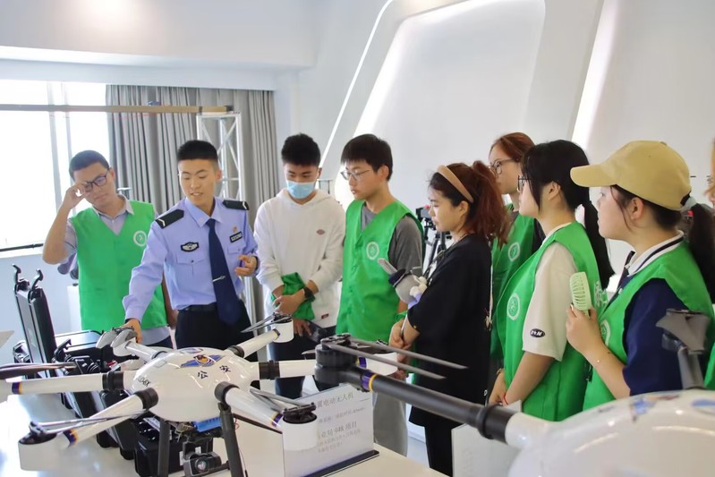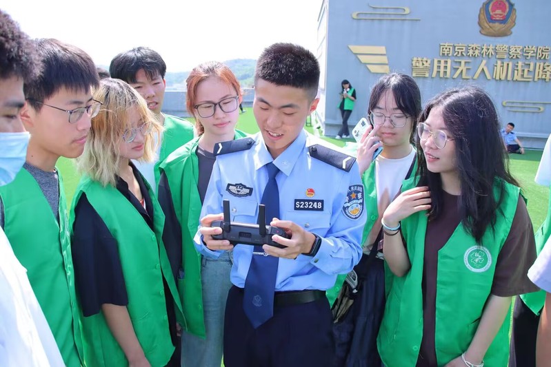活动分为两个阶段,第一阶段是参观南京森林警察学院仙林校区。在该校区,由南京森林警察学院的同学带领我校同学们参观各种鸟类标本及小型动物类标本,并有专业人士为同学们介绍相关生物的习性特征。随后,南森同学带领大家前往无人机创新工作室参观学习,并由相关同学现场展示了无人机的起飞、侦查、扩音、自动返航等功能,极大地体现了无人机救援与侦查的专业性与警校的风采,给大家留下深刻印象!