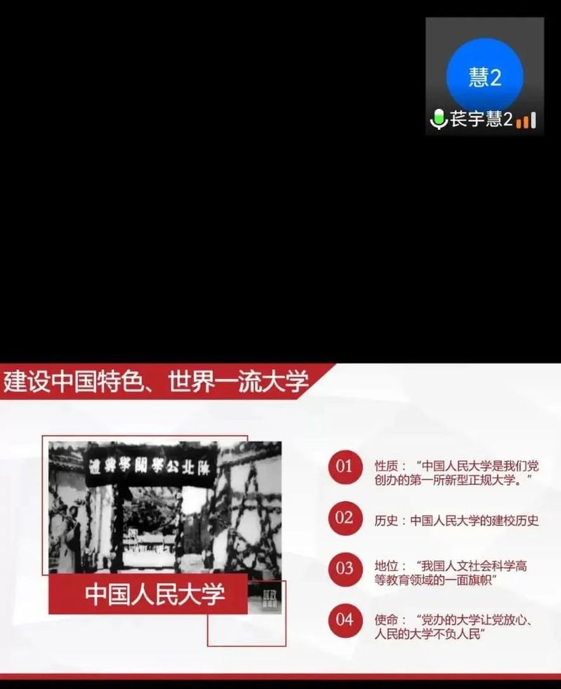 本次授课主题为“学习习近平总书记在中国人民大学考察时的重要讲话精神”。青年兴则国家兴,青年强则国家强。课程中,苌老师通过讲解五四运动引出本次授课的主题,并从“建设中国特色、世界一流大学”“思想政治理论课至关重要”“中国哲学社会科学任重而道远”“启示:当代青年当如何?”四部分进行讲授。苌老师全面讲述了中国人民大学的性质、历史、地位、使命,指出从中国人民大学可看出中国特色社会主义大学的初心和使命。苌老师表示中国哲学社会科学的发展应当坚持马克思主义指导思想,建构中国自主的知识体系,发挥哲学社会科学沟通中外的作用,关键在于哲学社会科学工作者。