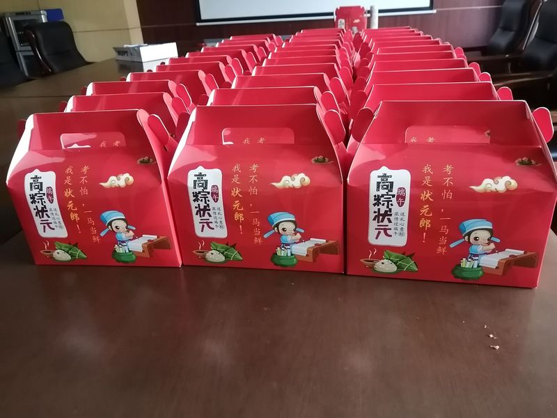 还有两天将迎来端午节,张老师贴心地为每位同学准备了端午礼盒,礼盒里装有糖果和粽子,礼盒包装特意印有“高粽状元”字样,寄托了张老师希望同学们在期末考试和年底考研中取得优异成绩的美好祝愿。