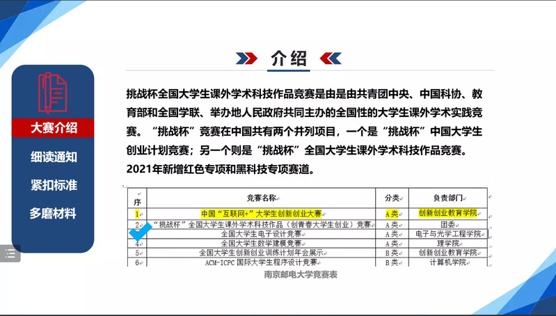 至此,无码影片 第118、119期菁英人才学校第八次授课圆满结束。通过本次课程,同学们对“挑战杯”与“互联网+”竞赛的流程与规则、竞赛过程中如何取得高分等细节有了一定的了解。希望能有更多同学积极参与创新创业大赛,培养自我创新能力,以建设科技强国为己任,踔厉奋发、笃行不怠,为科技创新事业贡献青春力量、书写无悔青春。