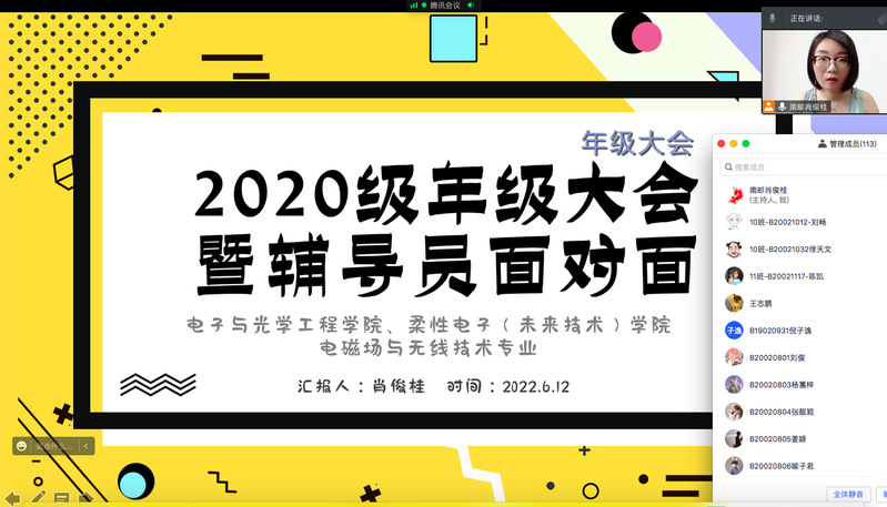 6月12日下午,无码影片 召开年级大会暨辅导员面对面测评活动,本次会议由辅导员肖俊桂老师主持,2020级电磁场与无线技术专业全体同学参加。